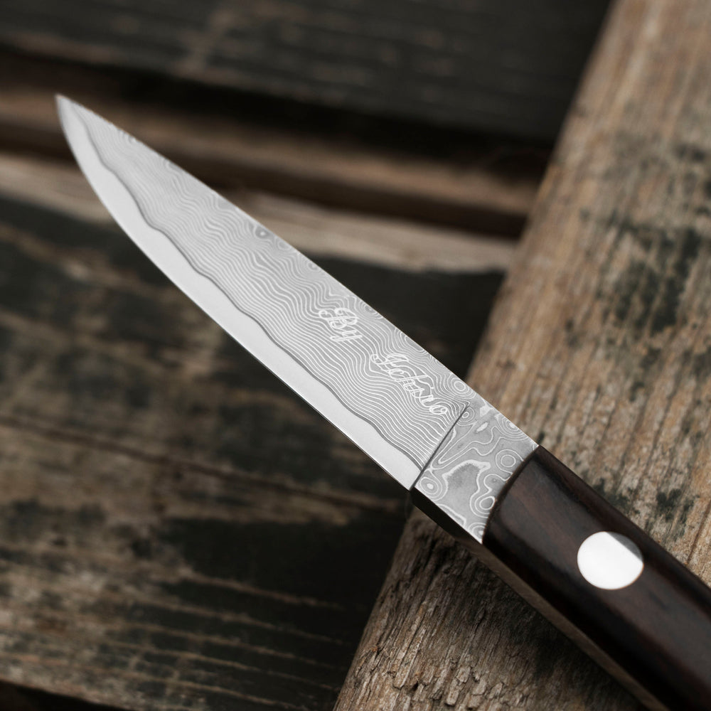 • Ostrze: rdzeń nierdzewna stal proszkowa Cowry-X okuty stalą nierdzewną
