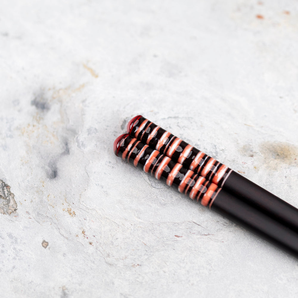Pałeczki Bidoro w wersji Red to połączenie nowoczesnego wzornictwa z tradycyjnym japońskim rzemiosłem. Ich charakterystyczny, poziomy wzór w odcieniach czerwieni nadaje im wyjątkowego, dynamicznego wyglądu, a wykończenie w formie kwadratowych końcówek sprawia, że trzymają się w dłoni pewnie i wygodnie.