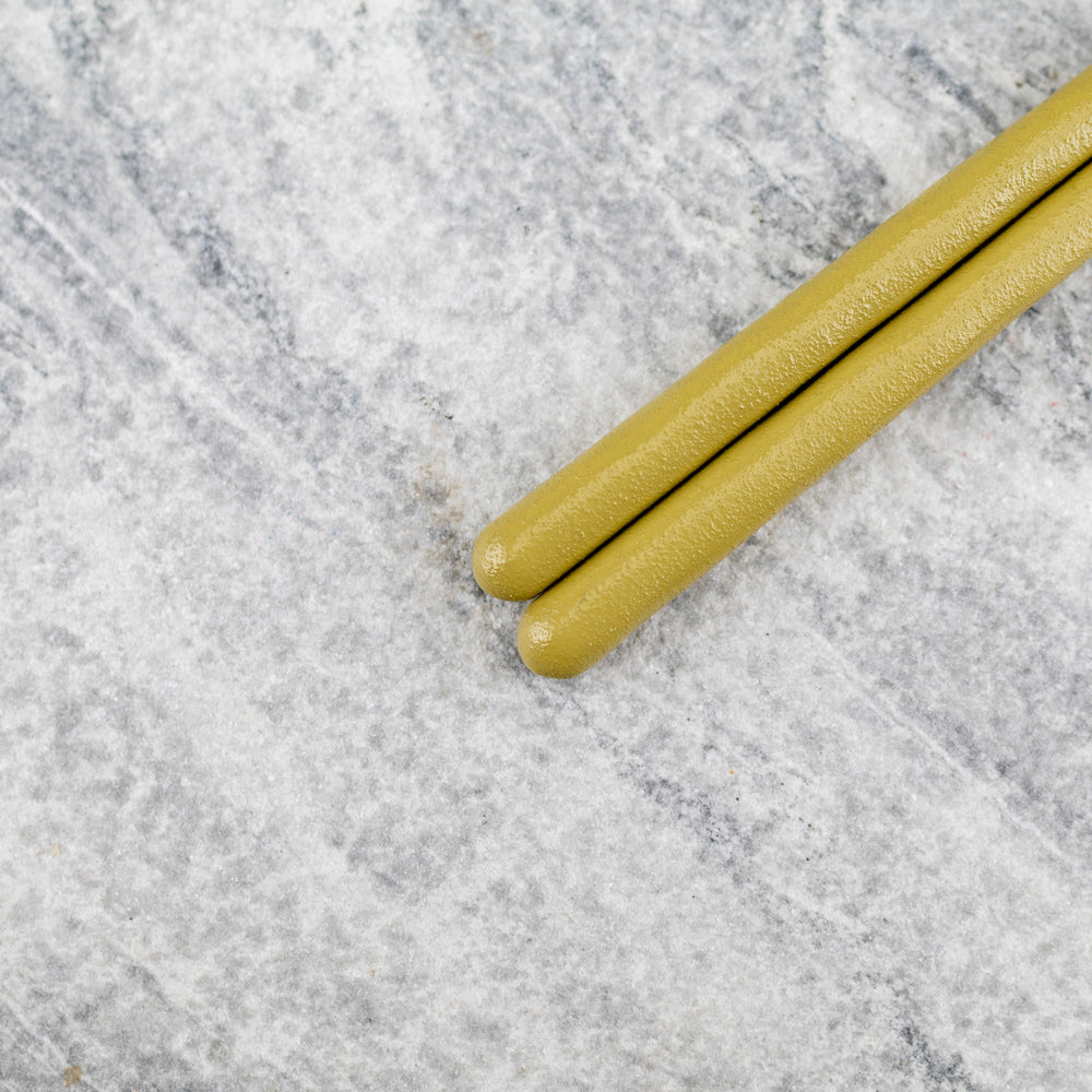 Wersja Moss Yellow inspirowana jest ciepłą barwą mchów i ziemistych tonów natury. Dzięki zastosowanej technice kanshitsu powierzchnia pałeczek zyskuje subtelną, szorstką fakturę, która nie tylko podkreśla ich charakter, ale także zapewnia przyjemność i wygodę w codziennym użytkowaniu. Stabilny kształt i precyzyjnie wyprofilowany uchwyt gwarantują pełen komfort podczas posiłku.