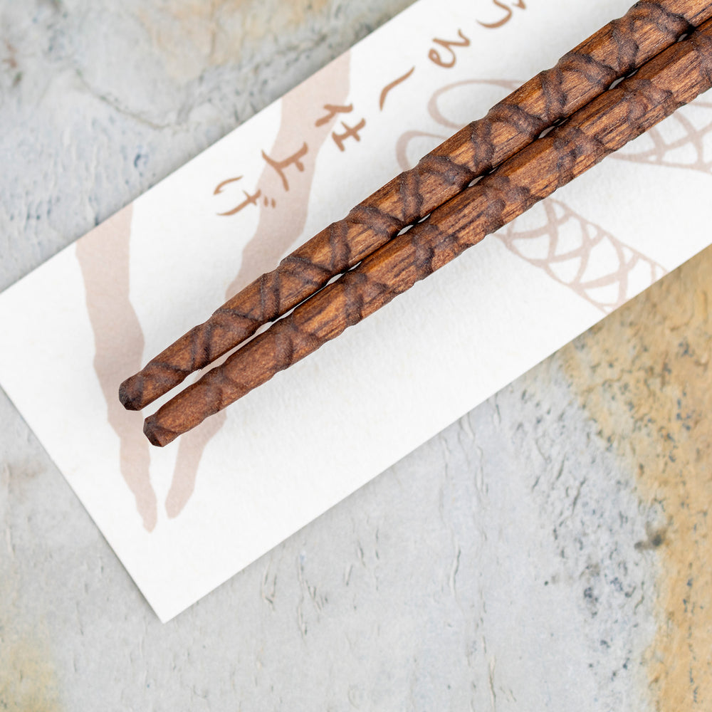 Ośmiokątny przekrój (Hakkaku) gwarantuje stabilny, wygodny chwyt i zmniejsza zmęczenie dłoni podczas dłuższego posiłku. Wykonane z naturalnego drewna i pokryte japońskim lakierem, charakteryzują się lekkością, trwałością i estetycznym wyglądem.