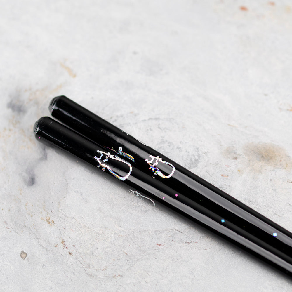 Pałeczki Oshidori Neko w wersji Black łączą eleganckie, tradycyjne wykończenie z uroczym motywem kota, naniesionym delikatną, srebrną i białą grafiką. Symbolizują harmonię, szczęście i towarzystwo – będą więc doskonałym upominkiem zarówno dla miłośników Japonii, jak i kocich entuzjastów.