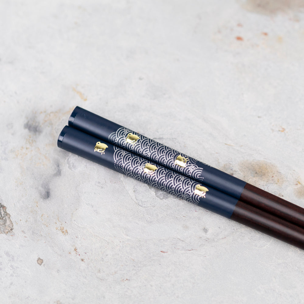 Pałeczki Seigai Chidori w wersji Blue prezentują klasyczne połączenie głębokiego granatu z delikatnym wzorem fal seigaiha oraz ptaków chidori. Motyw fal symbolizuje pomyślność i spokój, a ptaki – wytrwałość i wolność. To połączenie sprawia, że pałeczki są zarówno pięknym, jak i symbolicznym elementem nakrycia stołu.