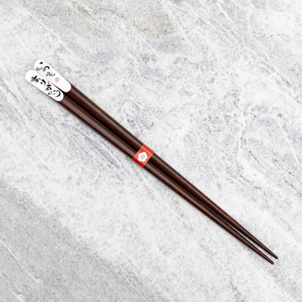 Model Thank you to subtelny sposób na okazanie wdzięczności. Eleganckie, ciemnobrązowe pałeczki z delikatnym, białym zdobieniem oraz napisem w języku japońskim sprawdzą się jako drobny, ale wyjątkowy prezent przy okazji urodzin, rocznicy, wizyty u przyjaciół czy spotkania biznesowego.