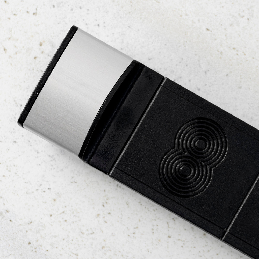 • Listwy magnetycznie stają się coraz częstszą metodą na przechowywanie noży i nie bez powodu, posiadają one bowiem wiele zalet. Pierwszą z nich, w porównaniu do bloków jest oszczędność miejsca. Listwa umieszczona na ścianie nie zabiera nam przestrzeni roboczej, a powieszona na niej noże są łatwo dostępne. Nie ma tutaj problemu z identyfikacją noży z jednej serii jak w przypadku bloków, gdzie widoczne są tylko rękojeści. Kolejnym powodem, dla którego warto zainteresować się listwami magnetycznymi: jest znakomita wentylacja, która jest szczególnie ważna w przypadku stali węglowych (rdzewnych). Staranne wykonanie i nowoczesny design listew firmy Bisbell znakomicie wkomponuje się w każdą kuchnię, a szeroka oferta materiałów pozwala na wiele aranżacji. Odradzamy klejenia listw do ściany, producent zaprojektował je do montażu przy pomocy kołków, które znajdują się w zestawie. Ten model pokryty jest gumą, skutecznie chroni to nóż przed zarysowaniami