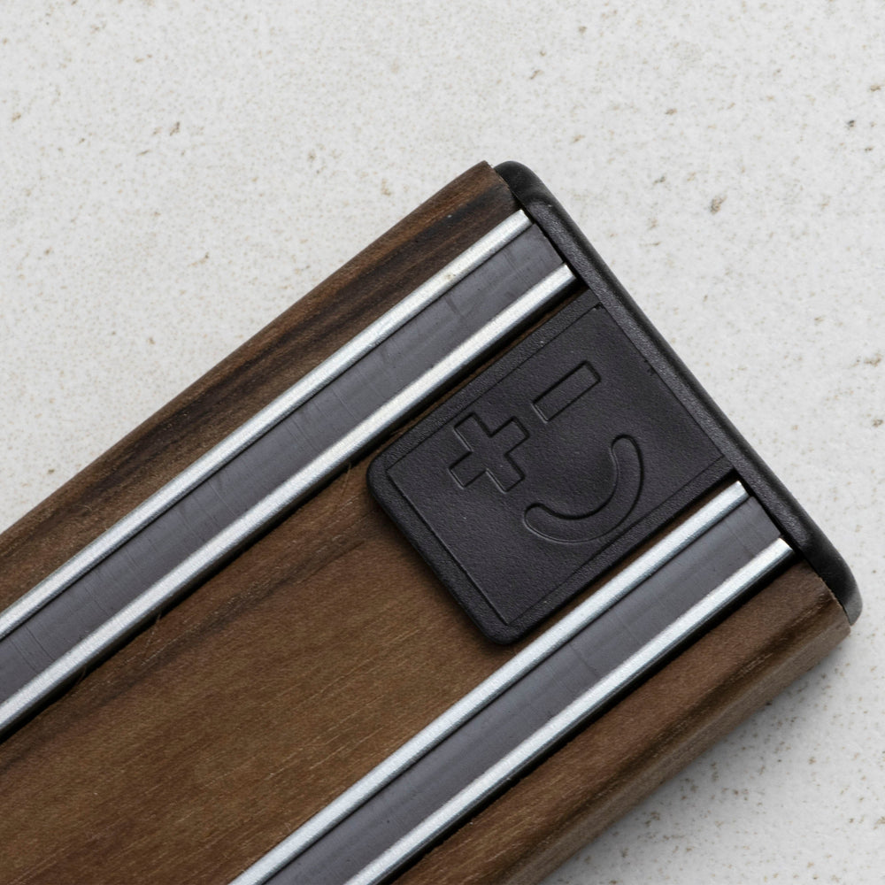 Magnetyczne szyny nadają nowoczesnego wyglądu i sprawiają, że listwa jest niezwykle mocna, trzeba jednak odkładać noże z uwagą, aby nie porysować ich tafli lub nie uderzyć krawędzią tnącą o magnes.