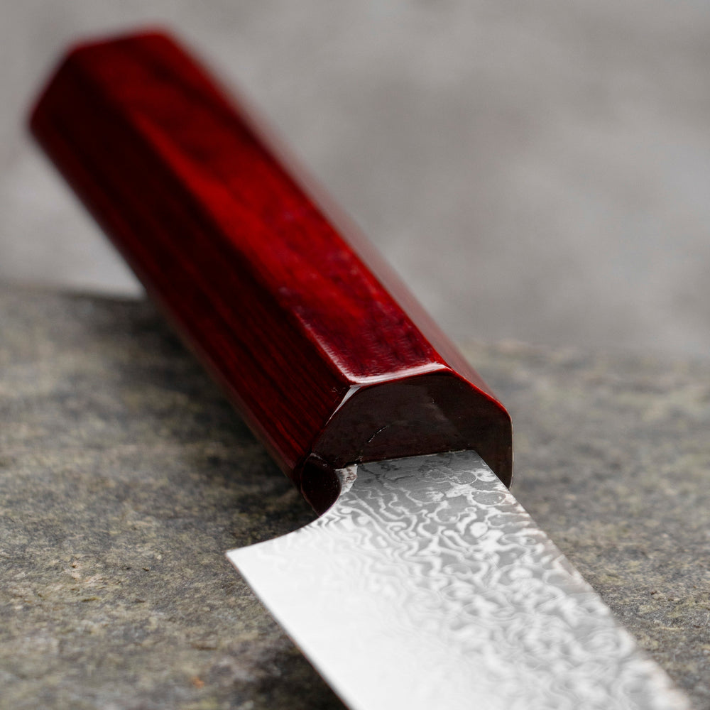 Co wyróżnia mistrza Kei Kobyashi to z pewnością septagonalna rękojeść oraz lakierowane rękojeści, które są jego znakiem rozpoznawczym,  co podkreśla indywidualność i niepowtarzalność twórczości Kobayashi.