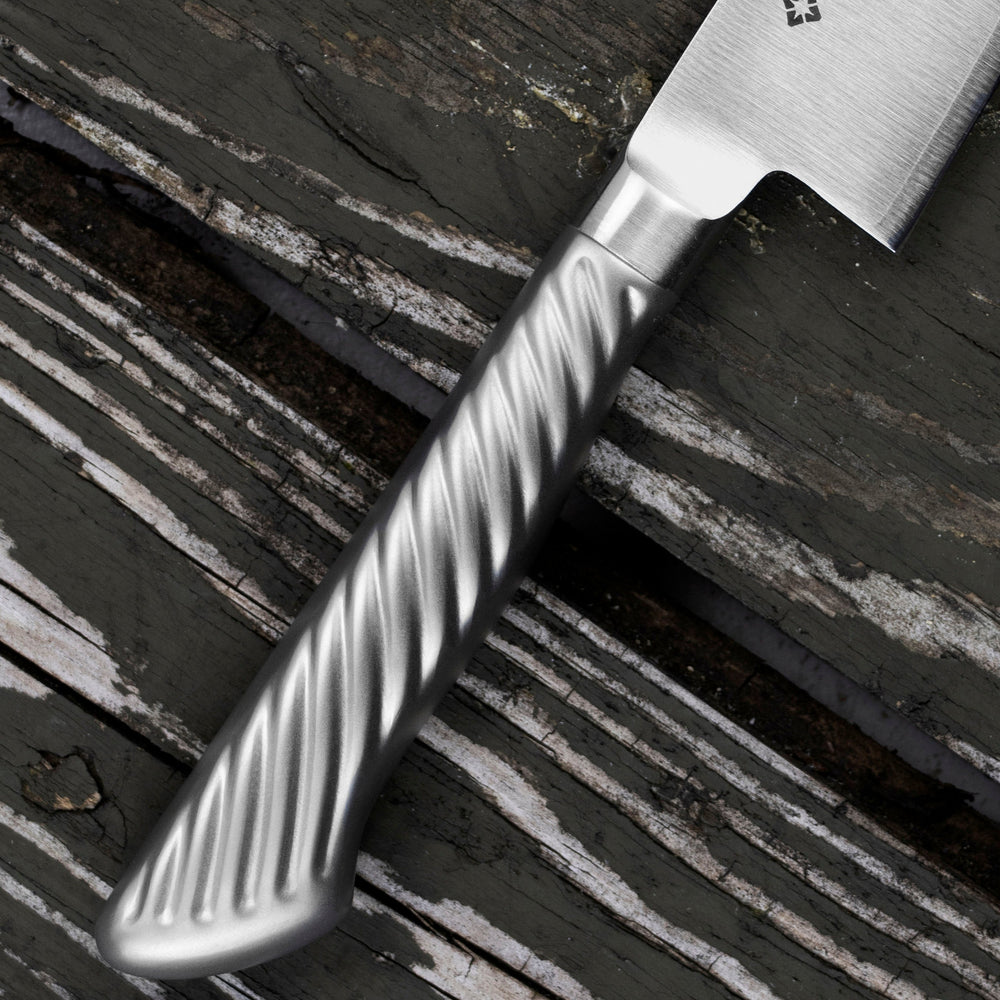 Noże wykonane ze stali VG-10 charakteryzują się świetnymi właściwościami tnącymi oraz długim czasem trzymania ostrości. Wymagają one minimalnych zasad konserwacji. Nóż ten sprawdzi się świetnie zarówno w rękach początkującego kucharza jak i profesjonalisty.