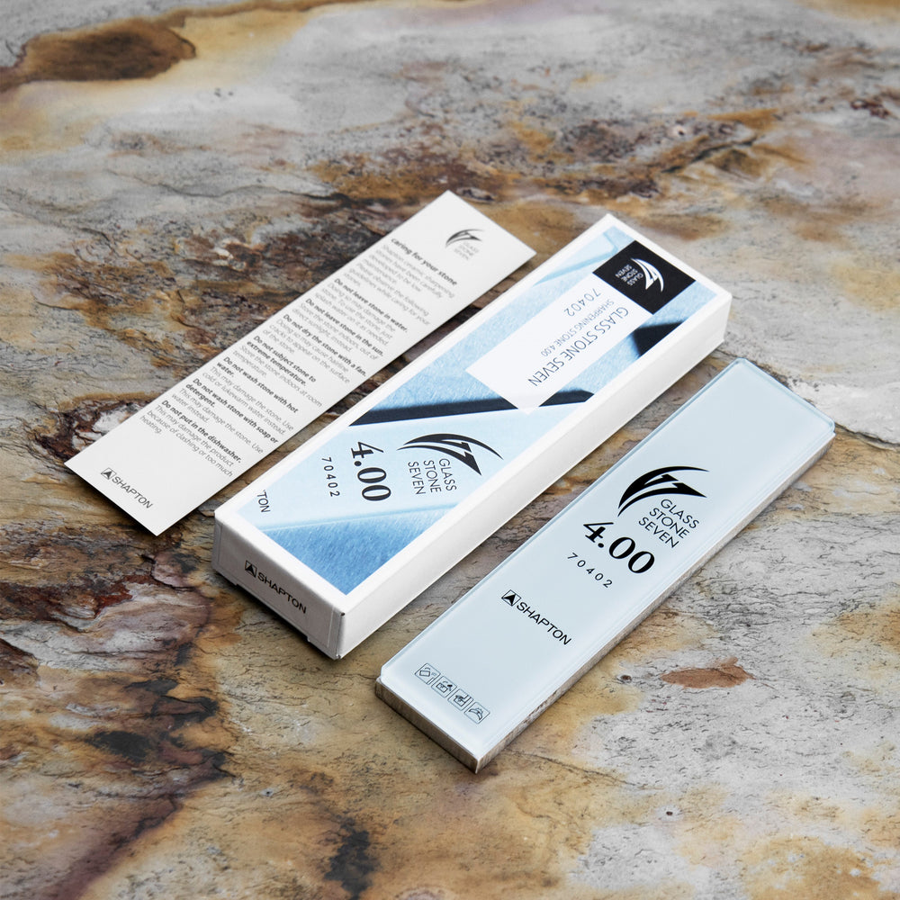 • Kamienie Shapton z serii Glass Seven to najnowocześniejsze rozwiązania w kwestii znanej ludzkości od tysięcy lat. Ostrzenie noży na kamieniach Glass, przebiega szybko I sprawnie. Do podstawy wykonanej z hartowanego szkła, przytwierdzany jest materiał ścierny – biały korund, jeden z najtwardszych minerałów na świecie, dzięki temu charakteryzują się widocznie dłuższą żywotnością niż tradycyjne kamienie. Kamienie Glass Seven nie wymagają takiego przygotowania jak tradycyjne kamienie wodne, wystarczy przed ostrzeniem spryskać je wodą, bez długotrwałego przechowywania w zbiorniku.