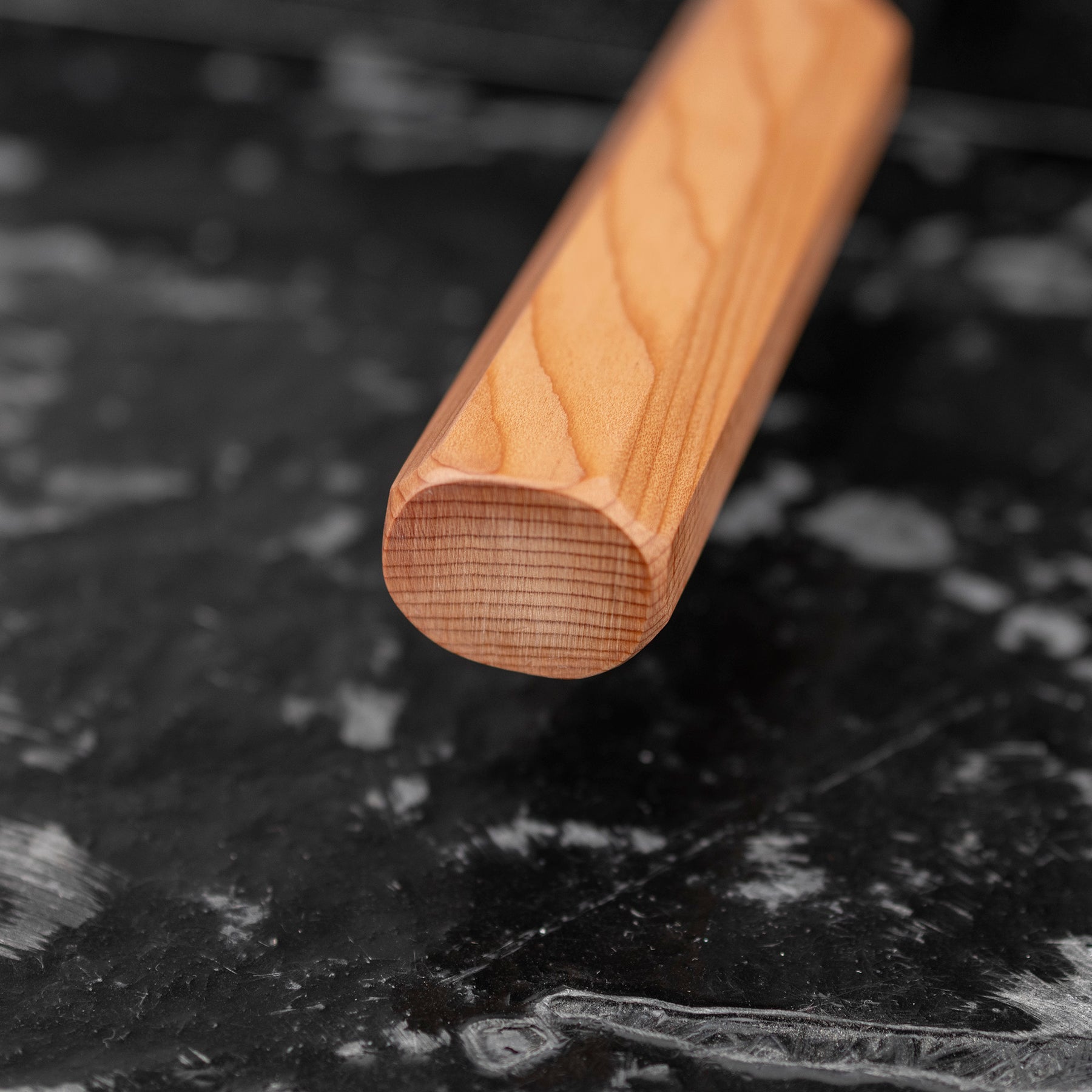 • Rękojeść: oktagonalna, drewno zelkova, pierścień z bawolego rogu