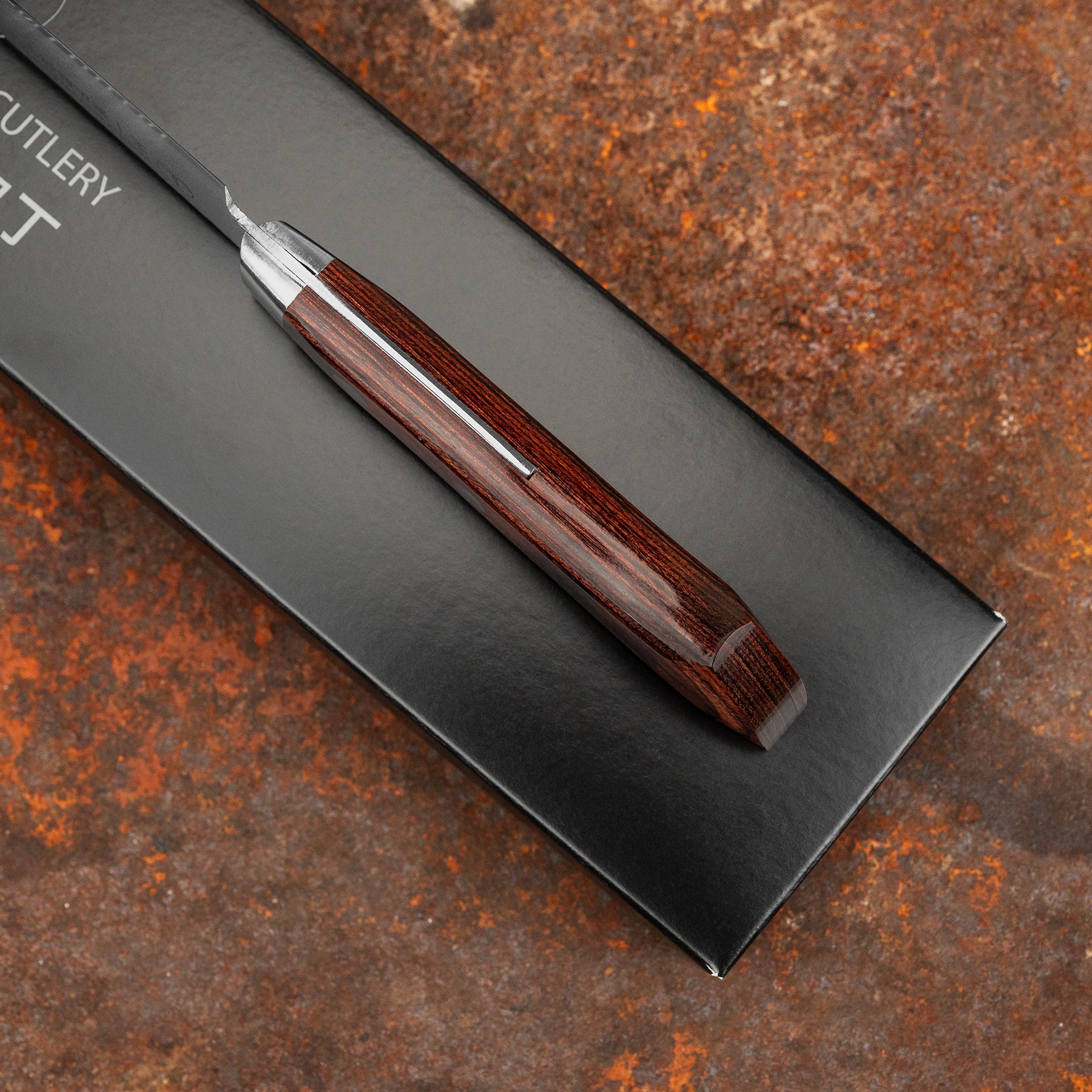 Stal Shirogami#2 wymaga, odpowiedniej opieki oraz wprawy w ostrzeniu noży. Produkt ten jest dedykowany, dla osób posiadających już pierwsze doświadczenie z nożami rdzewnymi.