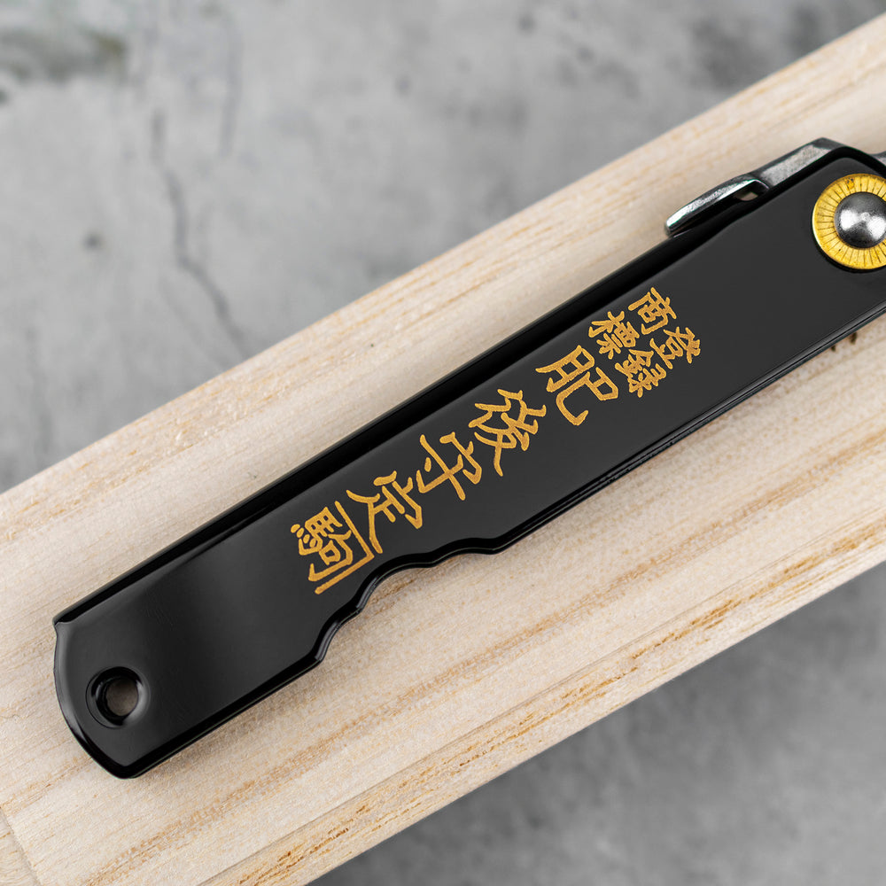 Rękojeść pokryta jest warstwą tradycyjnego japońskiego lakieru Urushi, znanego ze swojej trwałości i odporności na zarysowania. Mechanizm składania bez blokady (tzw. friction folder) pozwala na intuicyjne otwieranie jedną ręką, pozostając wiernym klasycznej formie noży Higonokami.