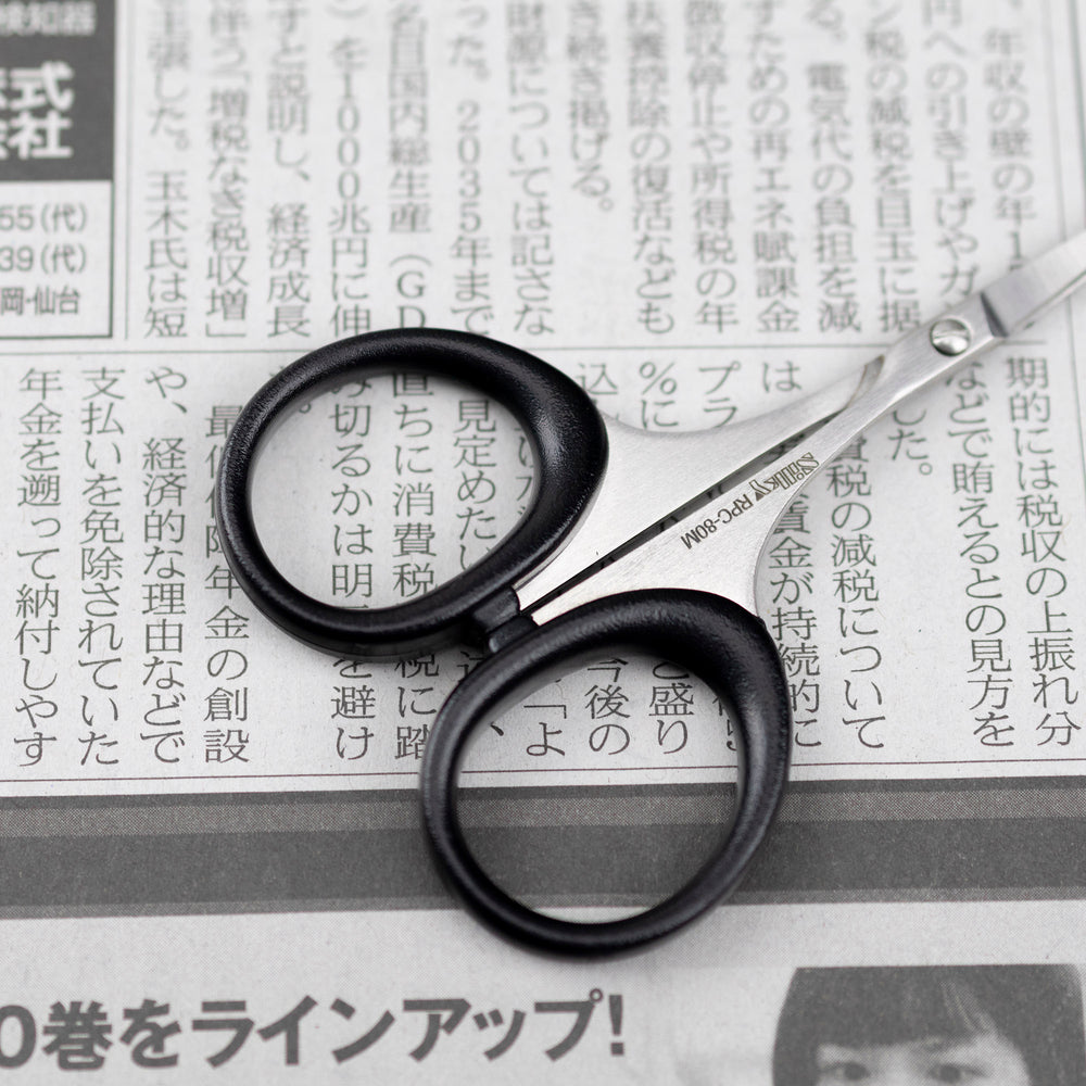 • Nożyczki RPC-80M z zakrzywionym ostrzem wyróżniają się cienkim jak igła ostrzem, które zapewnia wyjątkową ostrość i precyzję cięcia. Zaokrąglone rogi na zewnętrznej krawędzi ostrza sprawiają, że jest ono delikatne dla dłoni, zapewniając bezpieczeństwo podczas pracy. Dzięki zakrzywionej formie możliwe jest także cięcie wydrążające, co zwiększa wszechstronność zastosowań.