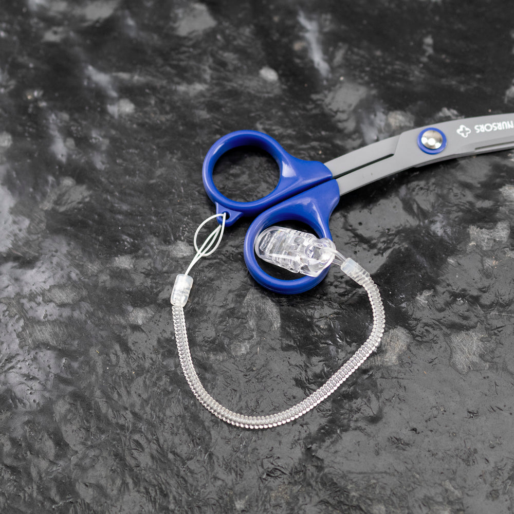 • Nożyczki NS-140SNB – Narsus Normal Bungee 140mm Niebieskie zostały zaprojektowane z myślą o bezpiecznym cięciu taśmy i bandaży. Ostrze pokryte żywicą fluorową zapobiega przywieraniu materiału, a zaokrąglona końcówka w połączeniu z plastikową osłoną minimalizuje ryzyko przypadkowego kontaktu ze skórą.