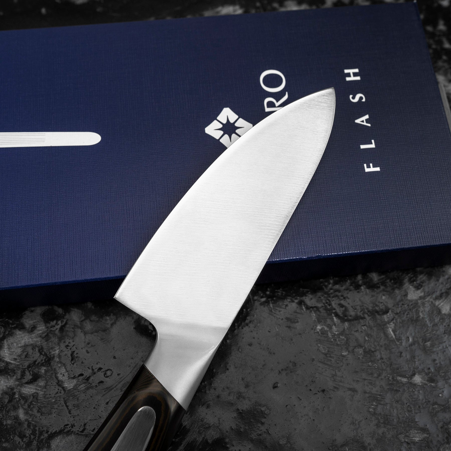 Noże wykonane ze stali VG-10 charakteryzują się świetnymi właściwościami tnącymi oraz długim czasem trzymania ostrości. Wymagają one minimalnych zasad konserwacji. Nóż ten sprawdzi się świetnie zarówno w rękach początkującego kucharza jak i profesjonalisty.