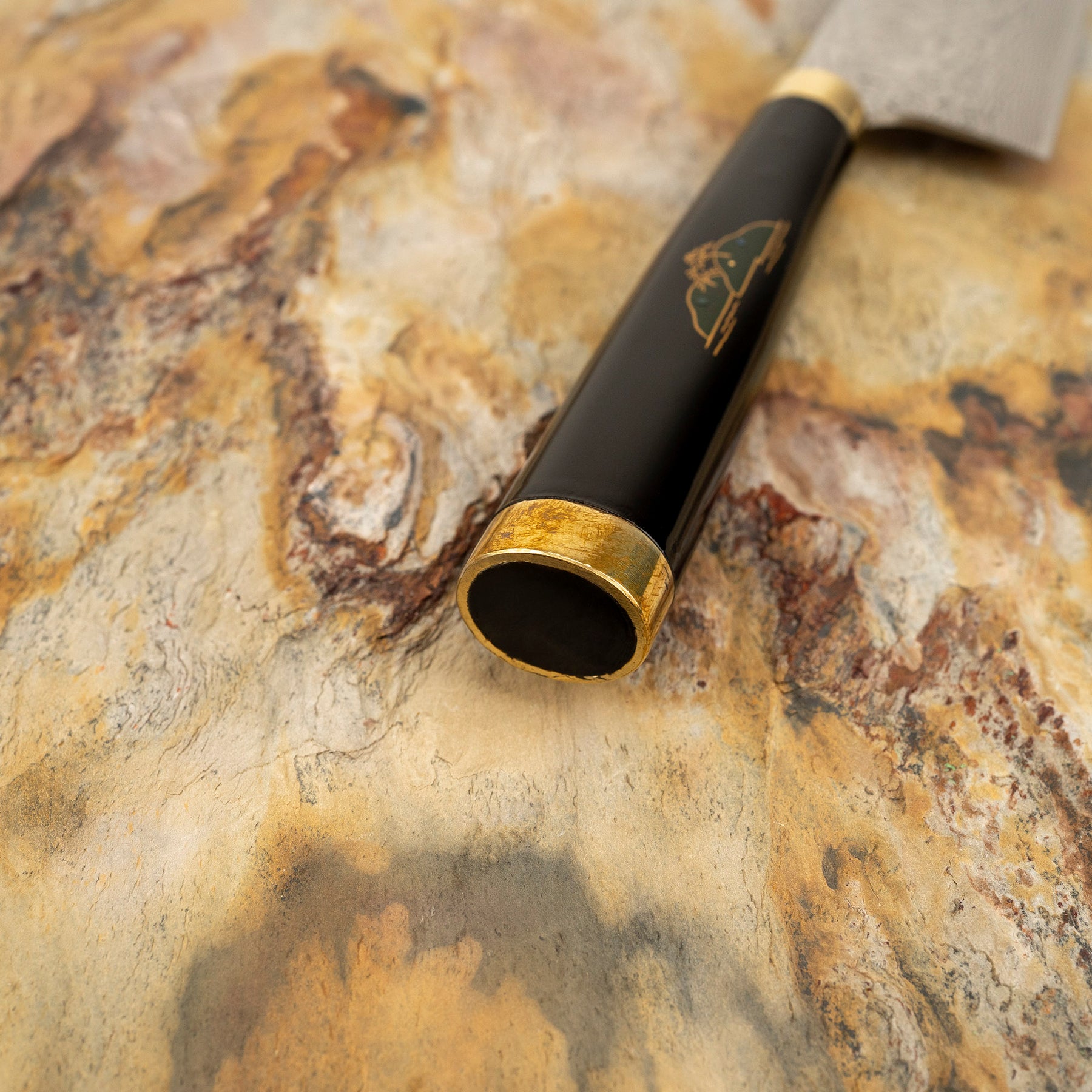 Do każdego noża dołączona jest wyjątkowa saya - ręcznie malowana i starannie dopracowana w każdym detalu. To połączenie tradycyjnego rzemiosła i wyrafinowanej estetyki, które nadaje całości niepowtarzalny charakter. Sam nóż wyróżnia się doskonałą jakością wykonania i unikalnym designem, stworzonym dla osób ceniących perfekcję i dbałość o szczegóły.