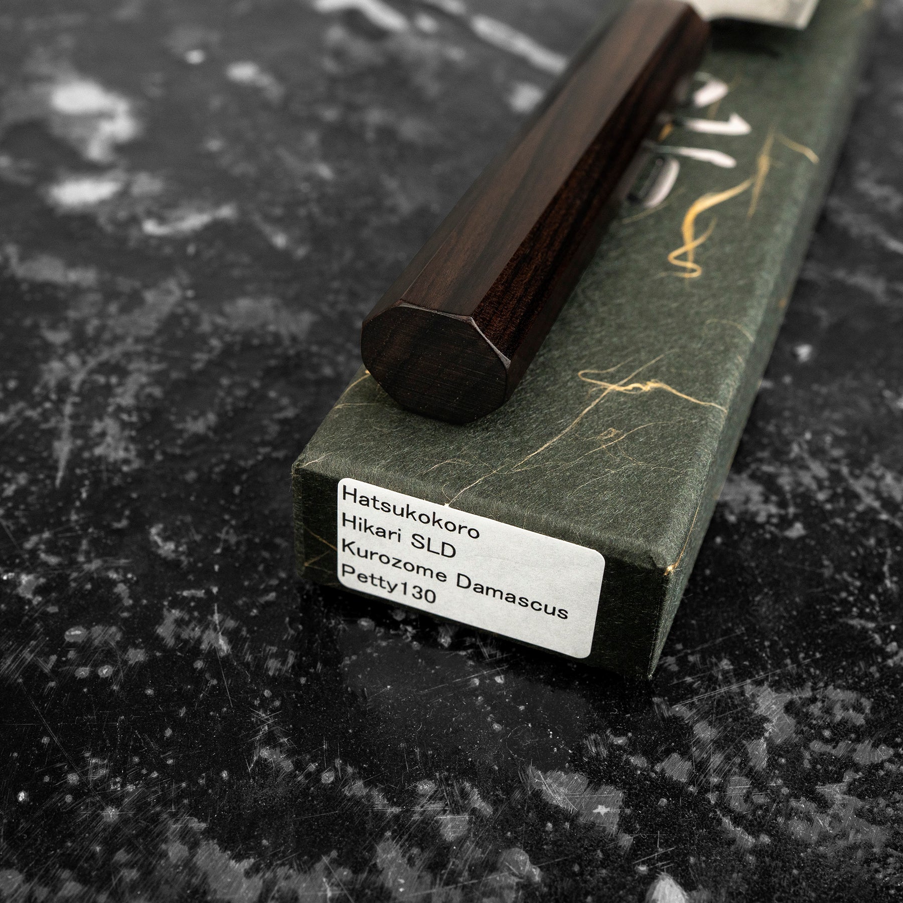 Petty 13 cm Hatsukokoro Hikari Kurozame SLD Damascus