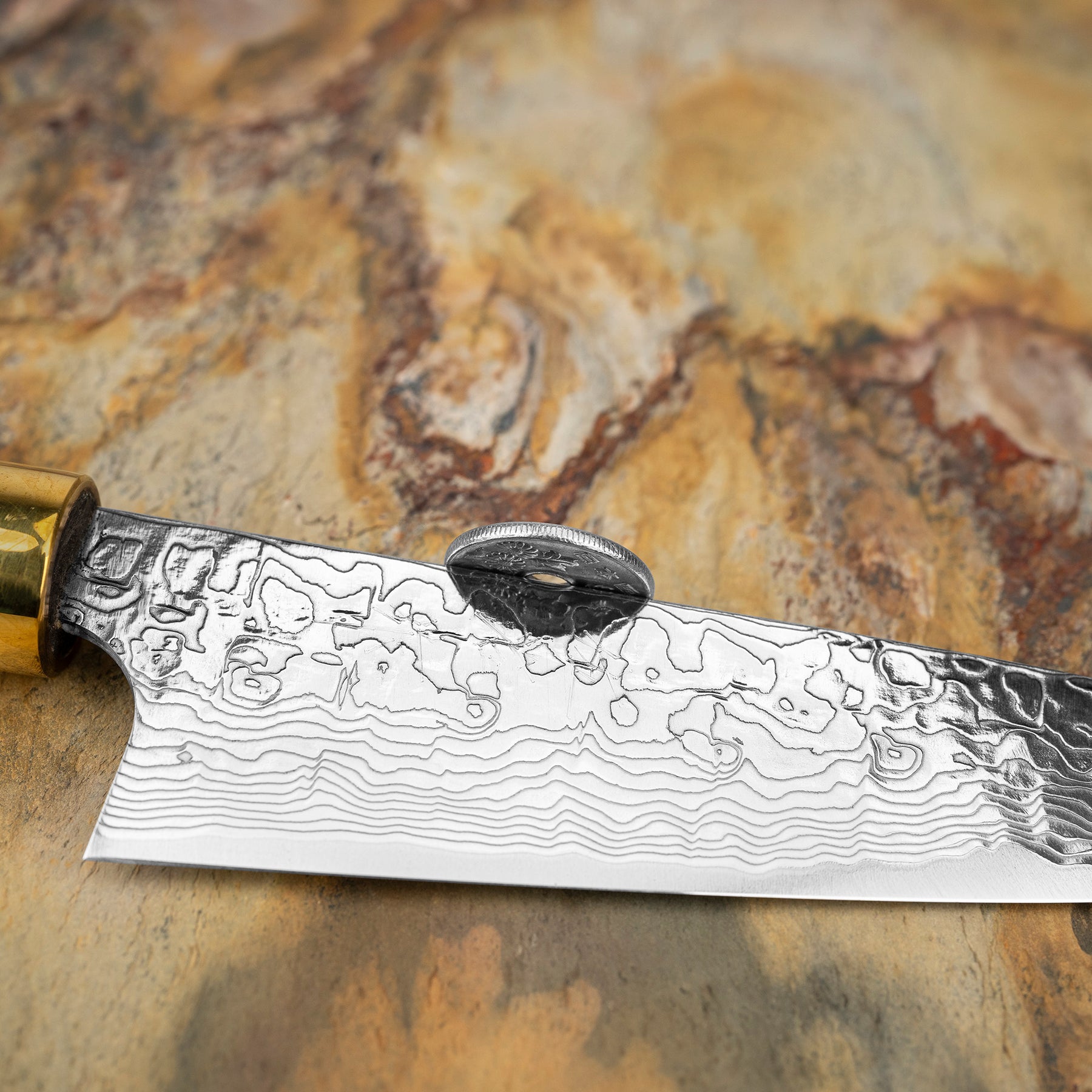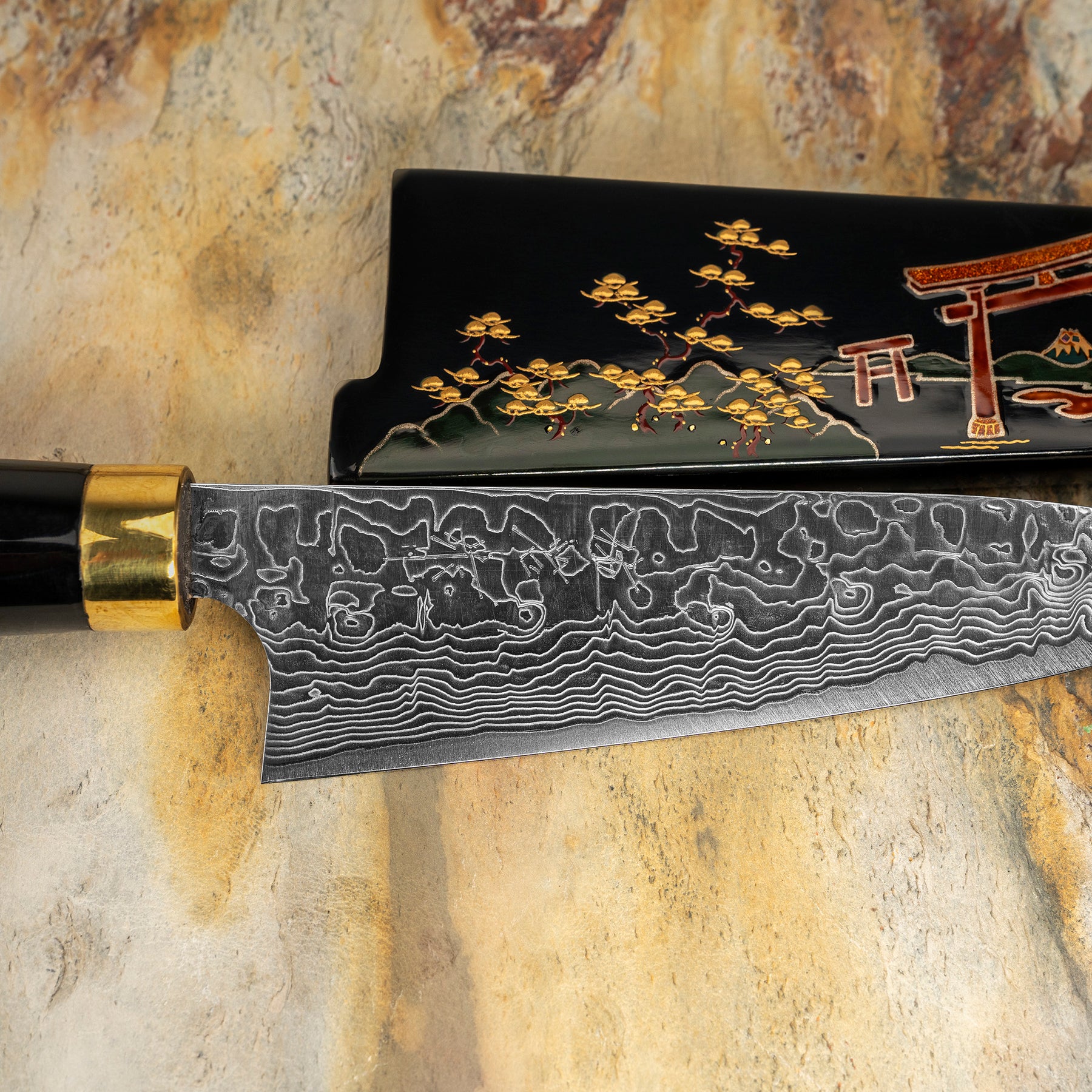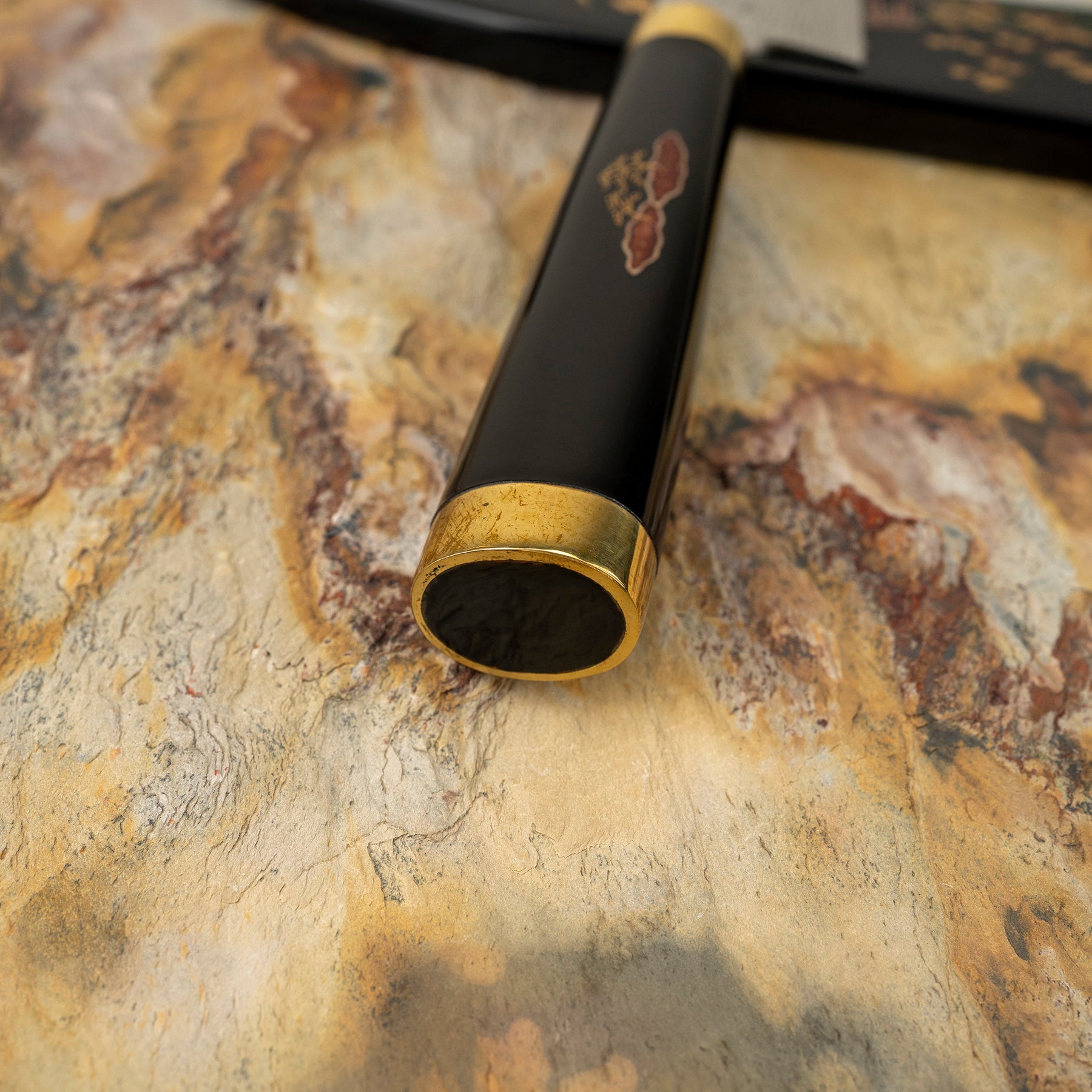 Do każdego noża dołączona jest wyjątkowa saya - ręcznie malowana i starannie dopracowana w każdym detalu. To połączenie tradycyjnego rzemiosła i wyrafinowanej estetyki, które nadaje całości niepowtarzalny charakter. Sam nóż wyróżnia się doskonałą jakością wykonania i unikalnym designem, stworzonym dla osób ceniących perfekcję i dbałość o szczegóły.