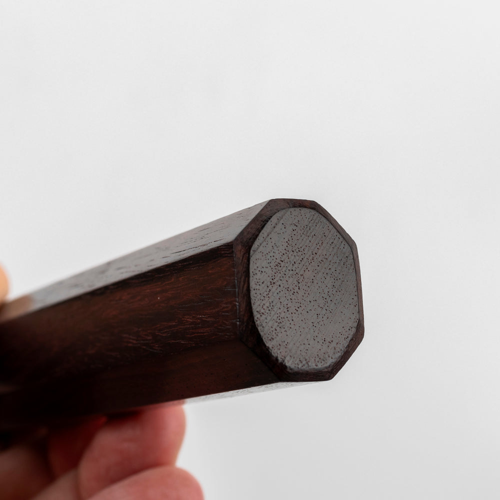 • Rękojeść: oktagonalna drewno różane, pierścień drewno pakka
